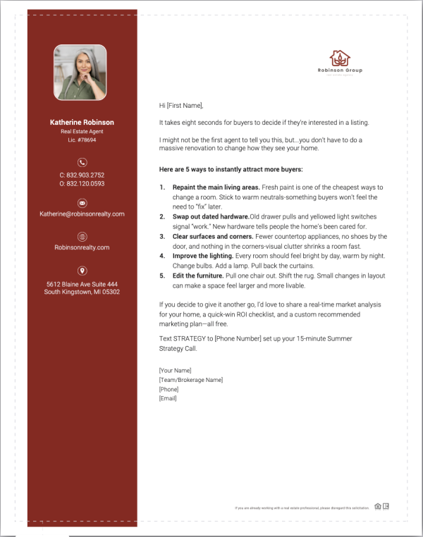 Turn hesitation into action with a results-driven letter that offers sellers a clear, time-bound plan for getting their home sold.