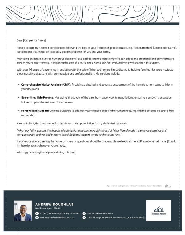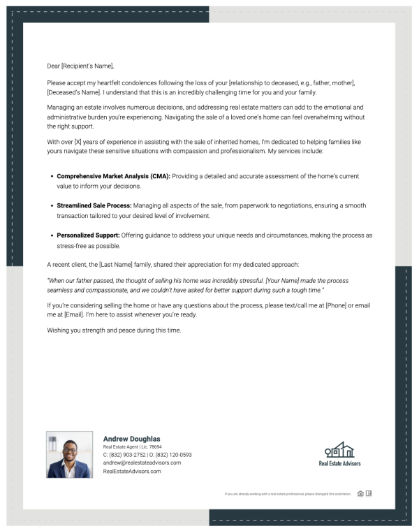 Offer compassion, clarity, and guidance to families navigating inherited property decisions with this professionally written probate letter.