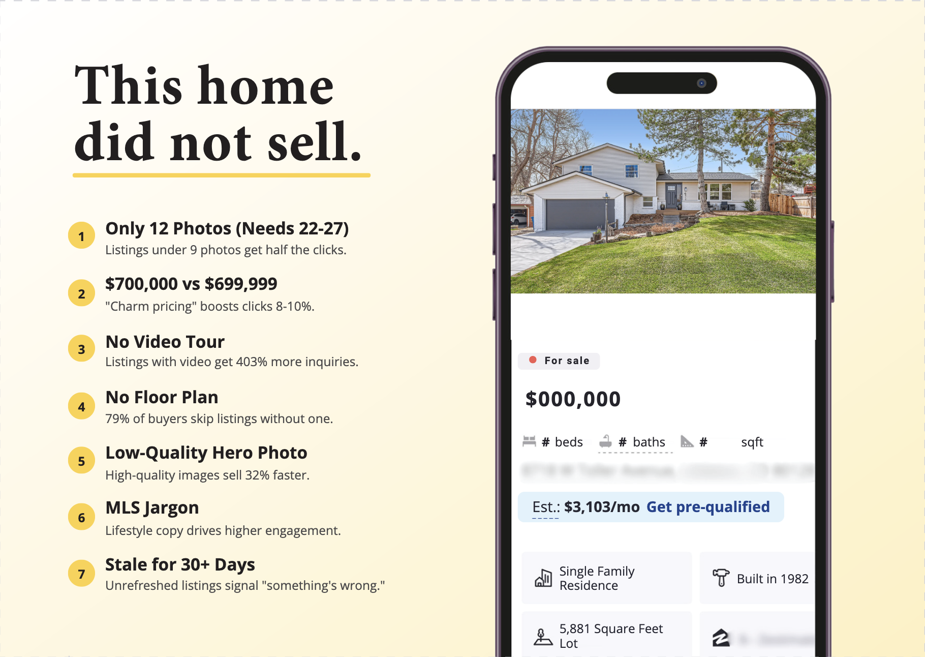 By highlighting the techniques behind effective listing marketing in an easily scannable format, you immediately separate yourself from the competition with real data.